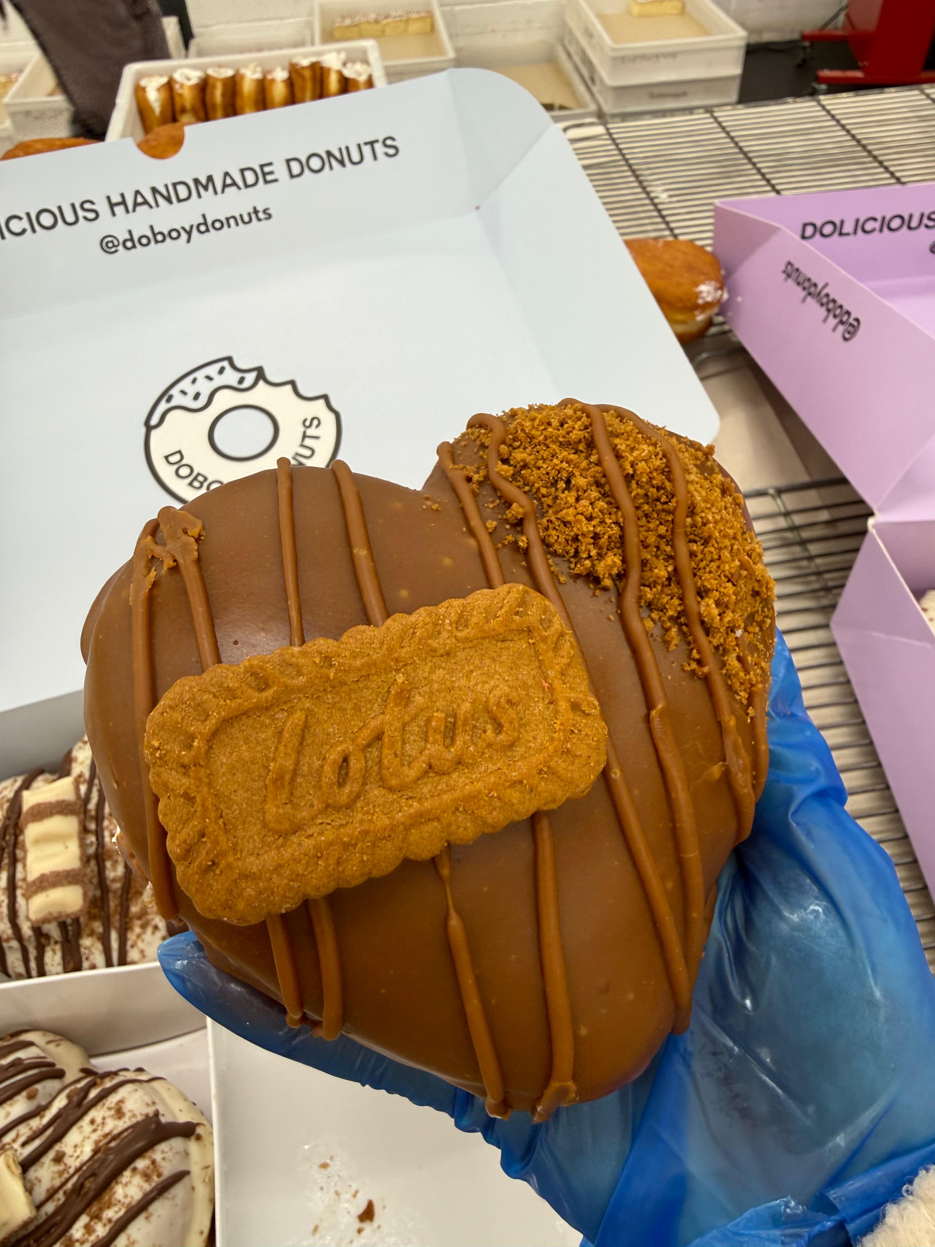 Looking for the ultimate vegan Biscoff donut? Our Biscoff Filled Heart Donut is handcrafted for serious Biscoff fans.